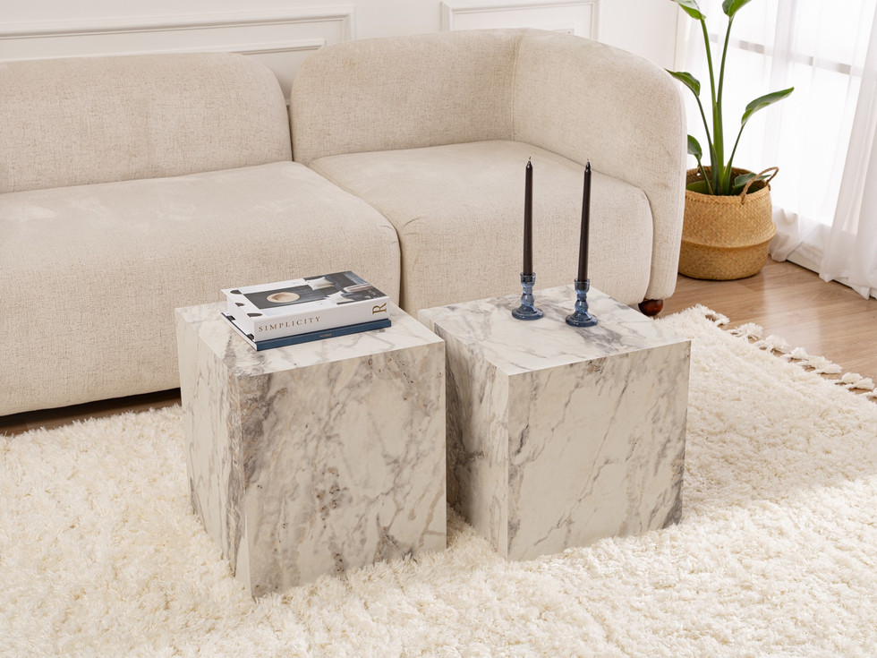 Küp Side Table Collection, a simple reflection of modern design with its Freesia marble look, creates an elegant touch in your living spaces. With its compact size, it can be used both as a side table and as a decorative object. A stylish choice for those looking for modern side tables, marble look coffee tables and small living room coffee tables.